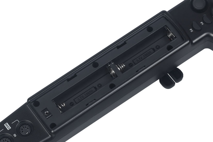 The Diosynth ships with a hardshell case that has custom cut foam to perfectly fit and protect the instrument. It also has storage for the included USB cables (Type A to C, and Type C to C), the custom ¼” TRS to split-TS audio cable, the USB power adaptor, a custom USB splitter (for computers with lower USB current specs), a neck strap, shoulder carry sling, spit scrunchy, an extra mouthpiece (for your friends who will want to try it), and a cleaning cloth. While it does not ship with batteries, we did provide cutouts for storage of four type 18650, 9900mAh, button top batteries.